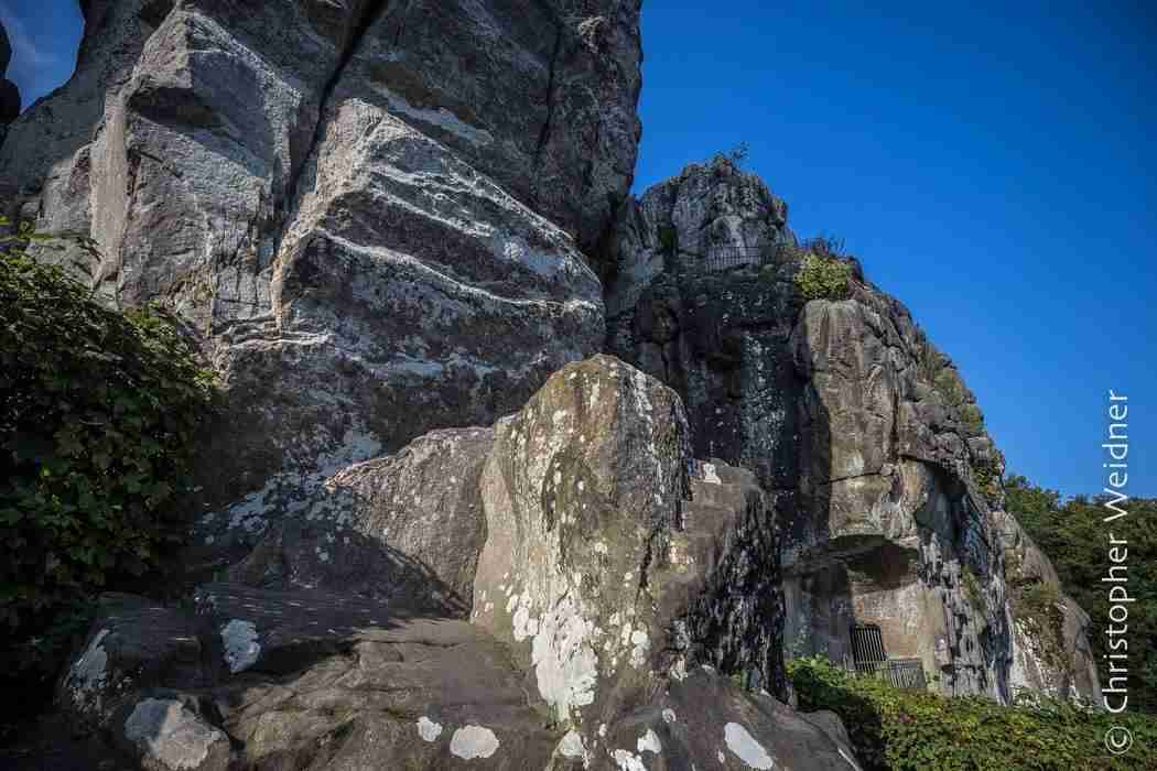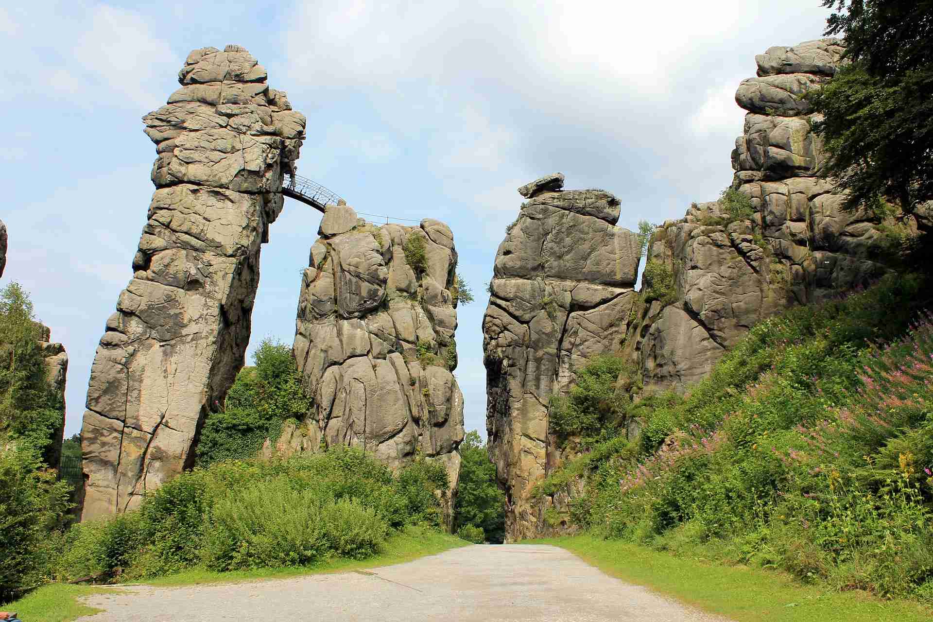 „Die Externsteine im Teutoburger Wald in der Nähe von Horn-Bad Meinberg gehören zu den eindruckvollsten Natur- und Kulturdenkmälern Mitteleuropas. Sie sind zwischen dreizehn und 35 m hoch und bestehen überwiegend aus Sandstein der Unterkreide-Zeit. Wie eine Naturkathedrale, über Jahrtausende gestaltet von Wind, Wetter und schließlich Menschenhand, reihen sie sich über den Wipfeln des Waldes – bis heute ein Mysterium. Rätselhaft ist nicht nur ihre verwitterte Gestalt, in der einige uralte Großsteinskulpturen erblicken wollen, geschaffen von einem rätselhaften Volk, dessen Spuren sich nur noch als vages Echo in vielen vorzeitlichen Relikten finden lassen. Unsere Vorfahren erkoren diese markanten Felsen zu ihrem Heiligtum und verehrten dort ihre längst vergessenen Götter. Für viele ist klar: Hier wurden schon in der Steinzeit wichtige Rituale abgehalten, hier fanden Einweihungen statt, hier begegneten die Menschen den höheren Mächten. Noch heute besuchen Menschen auf der Suche nach Spiritualität diesen Naturtempel, denn er gilt als der bedeutendste Kraftort Deutschlands. Altes Wissen ist mit diesen steinernen Riesen verbunden. Es geht eine Magie von diesen Steinen aus, die alle Zeiten überstanden hat, und die von uns positiv genutzt werden will. Nur wer sich ihnen mit allen Sinnen, mit Körper, Seele und Geist widmet, wird eine leise Ahnung von ihrer Macht bekommen.