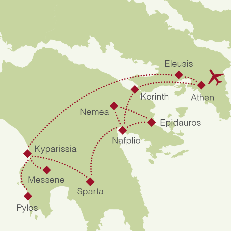 Sie besuchen Stätten, die einst im Herzen des religiösen und geistigen Lebens standen und ihre Atmosphäre bis heute bewahrt haben: Epidauros mit seinem heilsamen Asklepios-Kult, Nemea und Messene im sanften Hügelland des Peloponnes, das byzantinische Mystras, die weite Landschaft um Pylos und schließlich Eleusis – den geheimnisvollsten aller Orte, an dem die großen Mysterien gefeiert wurden. Hier verbanden sich Naturkräfte, Rituale und Weisheitslehren zu einer Erfahrung, die tief in der Seele verankert blieb.