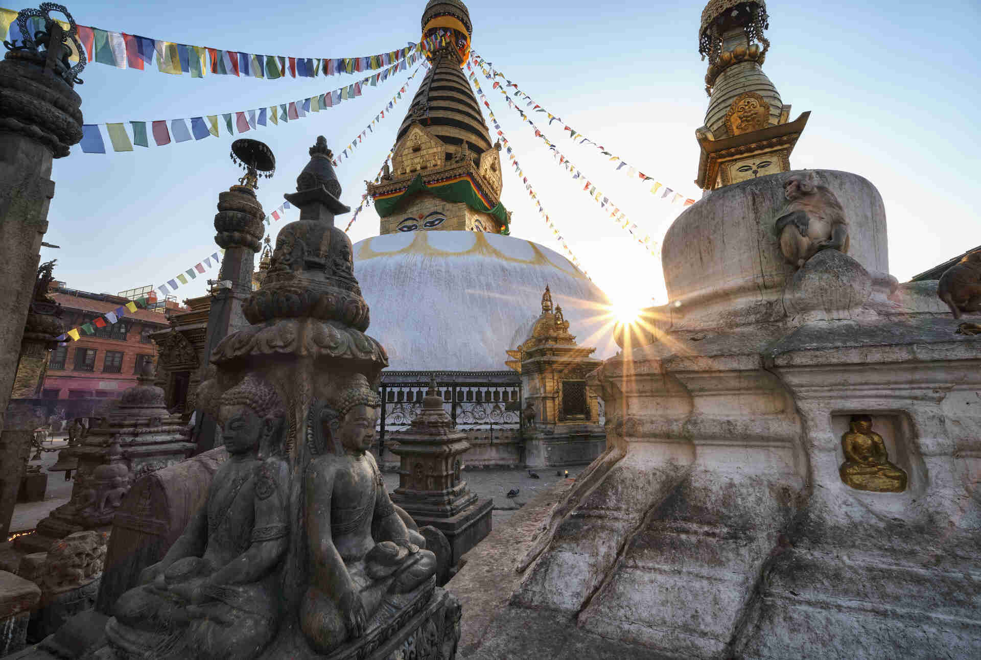 [weiterlesen]... Anschließend steigen wir hinauf zum Swayambhunath-Stupa, auch als „Affentempel“ bekannt. Der Weg führt uns durch farbenfrohe Gebetsfahnen und kleine Klöster, bevor wir von oben einen herrlichen Panoramablick über das Kathmandu-Tal genießen. Stupas gelten sowohl im Buddhismus als auch im Hinduismus als heilige Orte – ihre spirituelle Kraft ist überall spürbar.